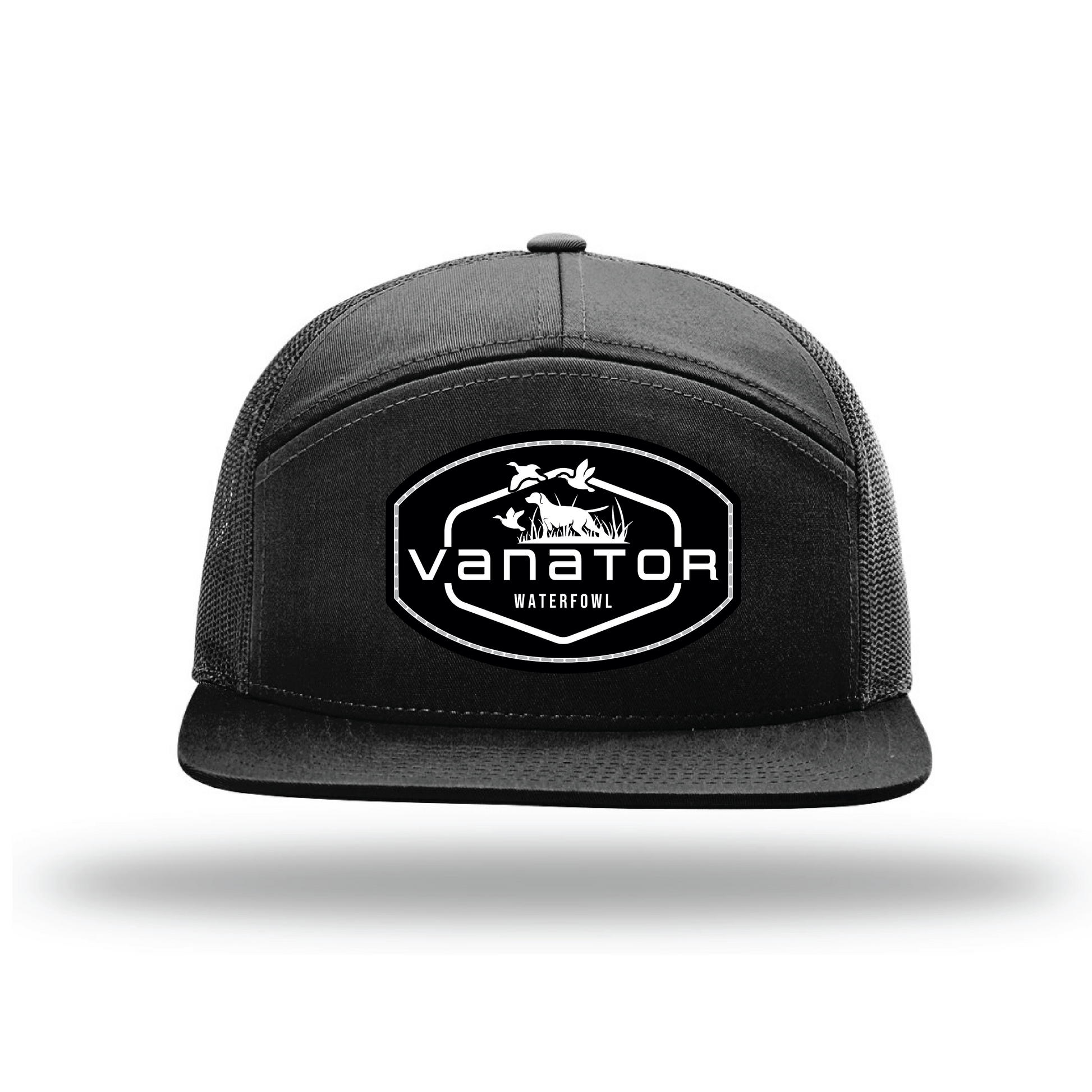 Built for hunters, designed for everyday wear — the Blackout Flight hat from Vanator Waterfowl combines stealth style with field-tested function. Featuring a bold black-on-black colorway and a breathable mesh back, this structured snapback keeps you cool and comfortable whether you're in the marsh or on the move. The durable front panel proudly displays the Vanator patch, symbolizing dedication to the pursuit of waterfowl. Gear up with a hat that works as hard as you do.