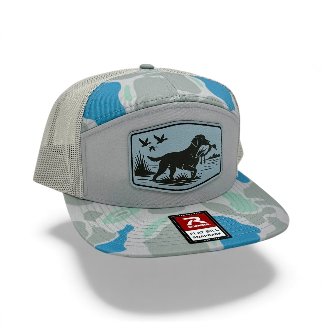 Bring the hunt to the coast with the Retriever Camo – Saltwater Series Hat. Built on the legendary Richardson 168 platform, this hat blends classic style with high-performance materials. The structured, mid-profile crown pairs perfectly with a custom patch featuring a retriever in action—bringing in a duck with birds in flight over a coastal marsh scene. The mesh back keeps you cool, while the saltwater-inspired camo pattern gives a nod to oceanfront adventures and wetland pursuits. Whether you're in the blind or just living the lifestyle, this hat is built for hunters who run deep.